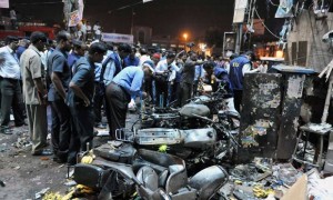 Indian police termed the serial blasts, near a bus stop and a theater in a busy commercial area and near a police commissioner’s office of the city, as terrorist attack.