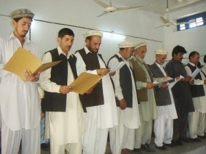 Provincial Minister Haji Hidayatullah congratulated the elected ANP member after administering the oath. He reminded them of great responsibility they now bear on their shoulders to serve the local people of their area and act as a team to help progress ANP in leaps and bounds.