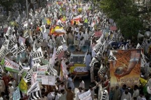 JUI-Sami leader Makhdoom Manzoor Ahmed, Ahle Sunnat Wal Jamaat secretary general Maulana Muhammad Akram and Jamaat-i-Islami leader Amirul Azeem also addressed the protesters.