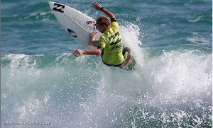 The South African surfer went through a series of average scores before eventually posting a 6.17 off his first business-wave and immediately followed it up with an impressive 7.23-point ride to finish with a heat-total of 13.40 points.