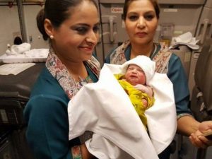 “Miracles happen everyday and we had our little miracle today onboard our flight PK 716 from Madinah to Multan,” the Pakistan International Airlines said in a statement issued on their Facebook page. “A beautiful baby girl was born!”